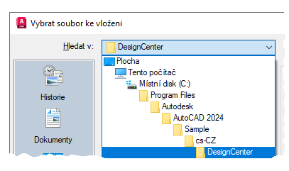 - Přejděte do složky DesignCenter, kde jsou uloženy různé vzorové výkresy.