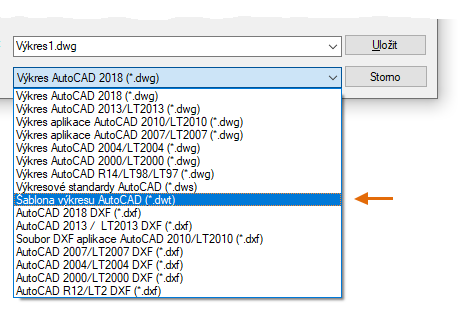 Všechna tato nastavení lze uložit do souboru šablony výkresu. Klikněte na tlačítko Nový a vyberte si z několika souborů šablon výkresu: