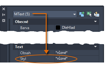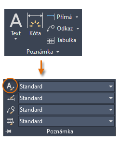 Stejně jako řada dalších funkcí poznámek, nabízí víceřádkový text mnoho možností nastavení. Tato nastavení můžete uložit pomocí příkazu PÍSMO jako styl textu. Přístup ke stylům textu, které jste uložili, pak můžete získat kliknutím na rozevírací šipku na panelu Poznámka. Aktuální styl textu je zobrazen v horní části rozevíracího seznamu.