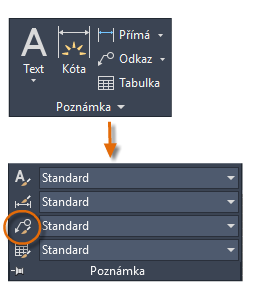 V rozevíracím seznamu na rozbaleném panelu Poznámka (nebo zadáním příkazu MODKAZSTYL v příkazovém okně) můžete vytvářet vlastní styly multiodkazů.