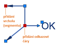 Nabídky uzlů se zobrazí, když přesunete kurzor nad šipku nebo uzly odkazové čáry. Prostřednictvím těchto nabídek lze přidat segmenty odkazové čáry nebo další odkazy.