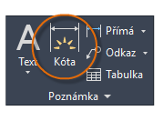 Pomocí příkazu KÓTY lze vytvářet horizontální, vertikální, šikmé a radiální kóty. Typ kóty závisí na vybraném objektu a směru přetažení kótovací čáry.