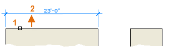 Pro níže uvedenou kótu 8'-0" můžete použít jiný způsob. Spustíte příkaz KÓTY, kliknete na dva koncové body (1 a 2) a potom kliknutím umístíte kótovací čáru (3). Pro účely zarovnání byl bod 3 kótovací čáry uchycen ke koncovému bodu dříve vytvořené kótovací čáry.