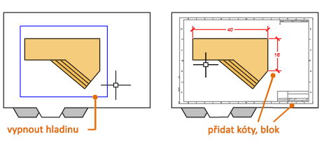 Hlavními důvody pro přechod do modelového prostoru pomocí výřezu rozvržení je posunutí pohledu nebo provedení menších úprav objektů, zvláště těch, které se zobrazují pouze ve výřezu.