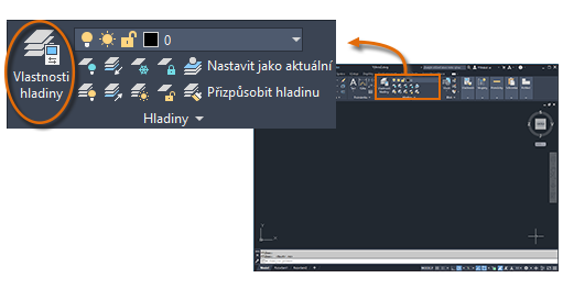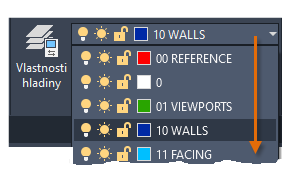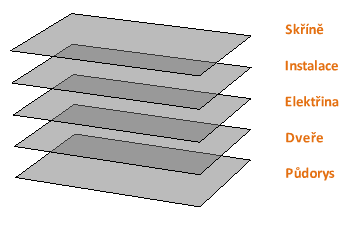 Hladiny slouží k uspořádání výkresu a umožňují dočasně potlačit zobrazení nepotřebných grafických dat. Ke každé hladině můžete také přiřadit výchozí vlastnosti, například barvu a typ čáry.