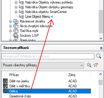 Chcete-li vložit možnosti nabídky, které se vztahují k aktivnímu příkazu v místní nabídce, použijte alias PŘÍKAZ_název příkazu. Za text název příkazu můžete dosadit jakýkoli platný příkaz. Pokud byste například chtěli, aby se možnosti nabídky zobrazily v místní nabídce při použití příkazu ÚSEČKA, použili byste alias PŘÍKAZ_ÚSEČKA.