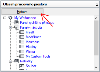 V podokně Obsah pracovního prostoru klikněte na tlačítko Hotovo.