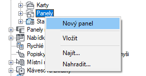 - Klikněte pravým tlačítkem myši na uzel Panely. Klikněte na položku Nový panel.