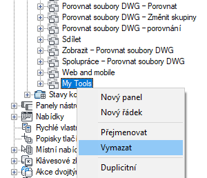 - Pravým tlačítkem klikněte na panel, který chcete odebrat. Klikněte na příkaz Vymazat.