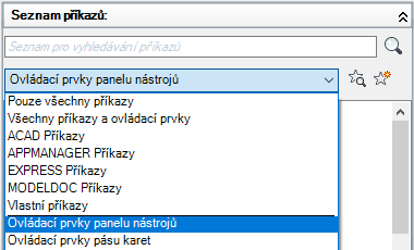 V podokně Seznam příkazů se zobrazí pouze seznam ovládacích prvků pásu karet.