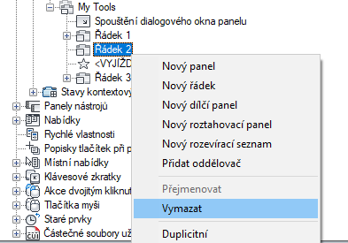 - Pravým tlačítkem klikněte na panel pásu karet, do kterého chcete přidat řádek. Klikněte na položku Nový řádek.