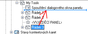- Klikněte na znaménko plus (+) vedle panelu pásu karet, ve kterém chcete k uzlu Spouštění dialogového okna panelu přiřadit příkaz.