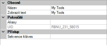 - Do pole Aliasy zadejte alias panelu pásu karet.