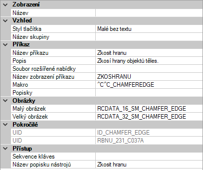 - V podokně Vlastnosti změňte vlastnosti přidaného příkazu.