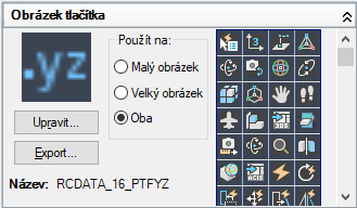 2. Na kartě Vlastní v podokně Seznam příkazů nebo Uživatelské úpravy: <název souboru> vyberte příkaz. Zobrazí se podokno Obrázek tlačítka.