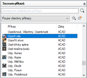 Na kartě Vlastní v podokně Seznam příkazů vyberte příkaz, u něhož chcete upravit štítek.