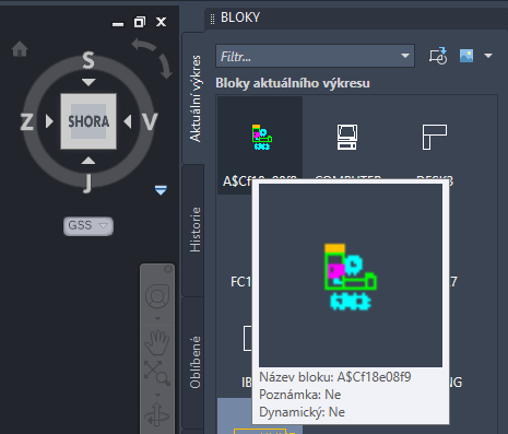 Můžete také zadat příkaz SVLOŽBLOK na příkazovém řádku nebo stisknout kombinaci kláves Shift+Ctrl+V.