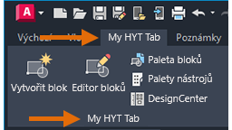 V tomto cvičení přidáte na panel pásu karet My HYT Panel, který jste právě přidali, pět příkazů souvisejících s bloky.