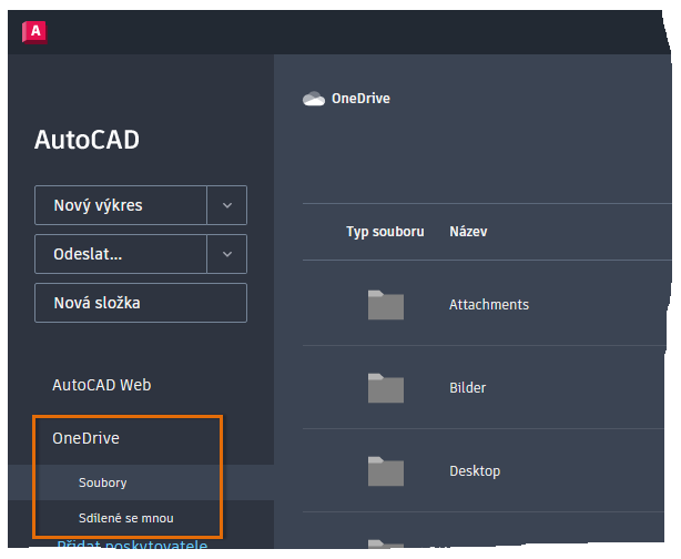 Kromě otevírání souborů výkresů, které byly uloženy do služby AutoCAD Web & Mobile, můžete přímo ve webové aplikaci AutoCAD (bez nutnosti instalace na disk) otevřít i výkresy, které byly uloženy přes zprostředkovatele cloudového úložiště třetí strany.