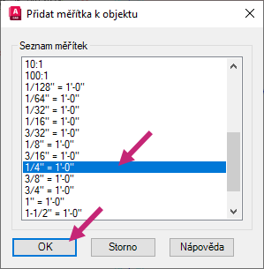 | CANNOSCALE | Nastaví název aktuálního měřítka poznámky pro aktuální prostor. | 1:1 | Výkres |