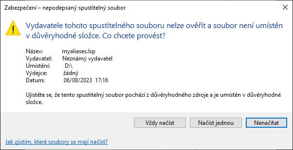 Chcete-li načíst soubor LSP automaticky při každém otevření aplikace AutoCAD, postupujte podle následujících kroků.