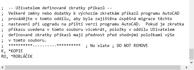 Tento řádek v souboru definuje A jako zkratku příkazu OBLOUK.