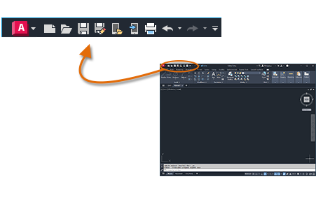Aplikace AutoCAD obsahuje standardní pás karet umístěný v horní části aplikace. Téměř všechny příkazy popsané v této příručce máte k dispozici na kartě Výchozí. Kromě toho najdete na panelu nástrojů Rychlý přístup, který je zobrazen níže, dobře známé příkazy, například příkazy Nový, Otevřít, Uložit, Tisk a Zpět.
