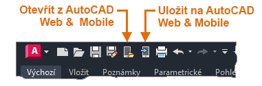 Pokud si myslíte, že potřebujete přístup k výkresu ze vzdáleného umístění, zkuste použít příkazy Uložit do služby Web and Mobile a Otevřít ze služby Web and Mobile.