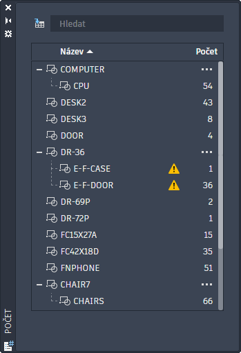 POČET – Spočítá a zvýrazní instance vybraného objektu ve výkresu.