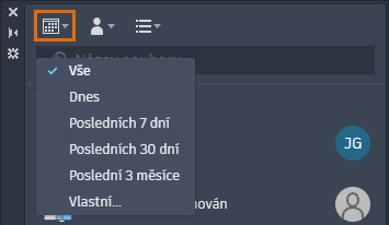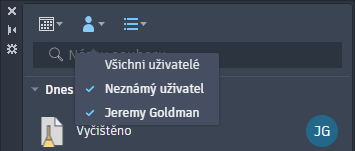 Nabídka Filtr uživatelů obsahuje pouze uživatele, kteří v aktuálním výkresu prováděli události.