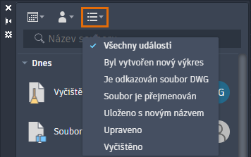 Nabídka Filtr událostí obsahuje pouze události aktuálního výkresu.