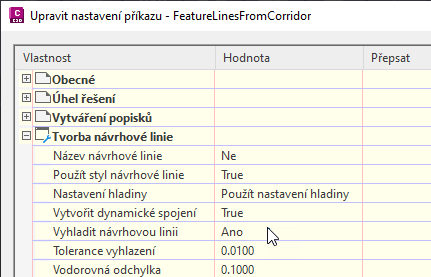 Obrázek 4: Nastavení příkazu pro vyhlazení návrhových linií koridoru pro zemní těleso