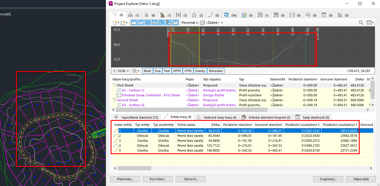 Klávesové zkratky, které slouží k přiblížení, posunutí nebo dočasnému zvýraznění ve výřezu aplikace AutoCAD, fungují u mnoha objektů aplikace Civil 3D také na úrovni podobjektů. Pomocí výše uvedených klávesových zkratek například můžete: