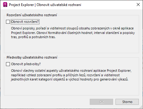 Předvolby uživatelského rozhraní nebo rozvržení můžete kdykoli obnovit pomocí tlačítka Obnovit v levém dolním rohu hlavního okna aplikace Project Explorer.