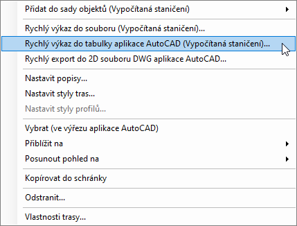 Chcete-li otevřít okno Vytvořit tabulku aplikace AutoCAD, vyberte v libovolném podokně seznamu objektů v okně aplikace Project Explorer jeden nebo více objektů a v místní nabídce zobrazené po kliknutí pravým tlačítkem myši vyberte jednu z možností rychlého výkazu do tabulky aplikace AutoCAD.