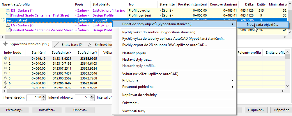 Pomocí funkce Sady objektů v aplikaci Project Explorer můžete opakovaně generovat nebo aktualizovat více tabulek najednou. Tabulky aplikace AutoCAD vygenerované pomocí pracovního postupu sad objektů můžete dynamicky propojit se zdrojovými objekty aplikace Civil 3D. Dynamické propojení bude fungovat vždy, když bude okno aplikace Project Explorer otevřené. Případně se změny vyplývající z dynamického propojení použijí při jeho příštím otevření.