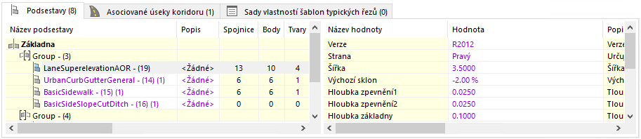 Okno Project Explorer obsahuje řadu vyhrazených nástrojů k úpravě návrhu aplikace Civil 3D ve specifických scénářích.