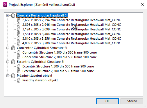 Vybrané parametry lze v rámci jedné operace v okně Project Explorer upravit pro více objektů najednou. Chcete-li použít úpravy u více objektů najednou, vyberte v okně Project Explorer několik objektů a v příslušné místní nabídce zobrazené po kliknutí pravým tlačítkem myši vyberte funkci úpravy.