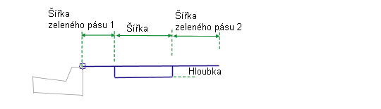 Spojnice pro vnitřní zónu ochranného pásu, chodník a vnější zónu ochranného pásu se vkládají směrem od bodu připojení v horizontálním sklonu. Zóny ochranného pásu je možné vynechat tak, že se jejich šířka nastaví na nulu.