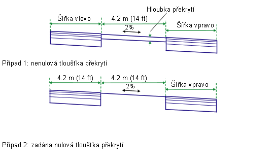 V režimu návrhu je tato podsestava připojena k libovolnému vhodnému bodu. Vrstva překrytí je zobrazena s jednotnou hloubkou v šířce 4,2 metru nebo 14 stop se sklonem -2 %. Rozšiřující pruhy jsou vedeny od hran překrytí s danými šířkami a hloubkami se sklonem -2 %.