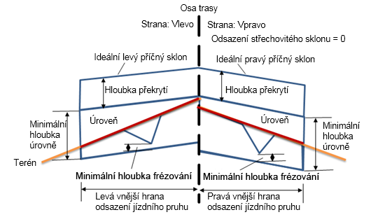 | Minimální pravá hloubka frézování | Jedná se o minimální hloubku frézování od spodku hladiny frézování ke spodku hladiny existujícího terénu na pravé straně. | Numerický, kladný | 0.300 m |