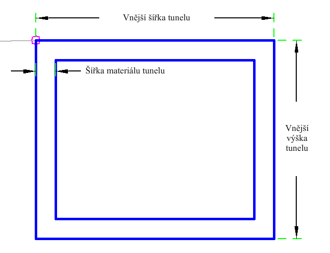 | Vnější šířka tunelu | Šířka vnější strany tunelu | Numerický, kladný |