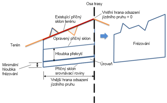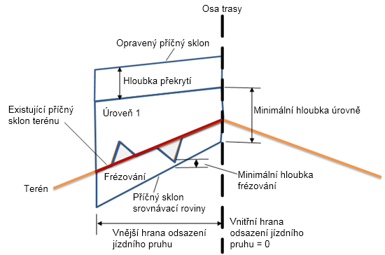 | Minimální hloubka frézování | Jedná se o minimální hloubku frézování od spodku hladiny frézování ke spodku hladiny existujícího terénu. | Numerický | 0.300 m |