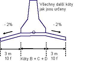 Poznámka: všechny rozměry jsou v metrech nebo stopách, pokud není uvedeno jinak. Všechny sklony jsou uvedeny v podobě poměru (například 4 : 1), pokud nejsou označeny jako procentní sklony se značkou „%“.