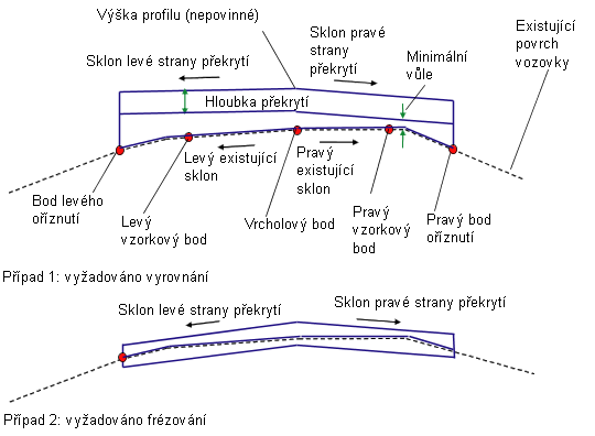 Vertikály z existujícího povrchu do spodní části překrytí: OŽK-Vyrovnávka – pro případ vyrovnání. Frézování – pro případ frézování. |
