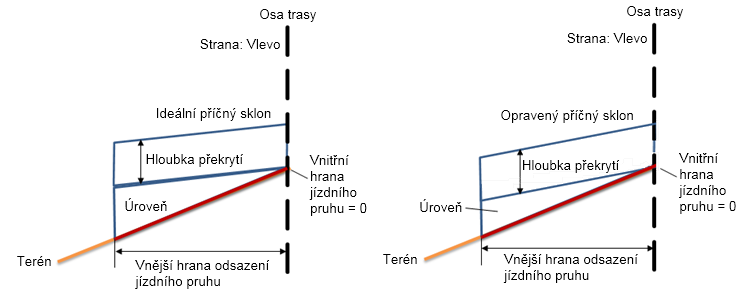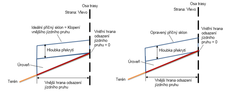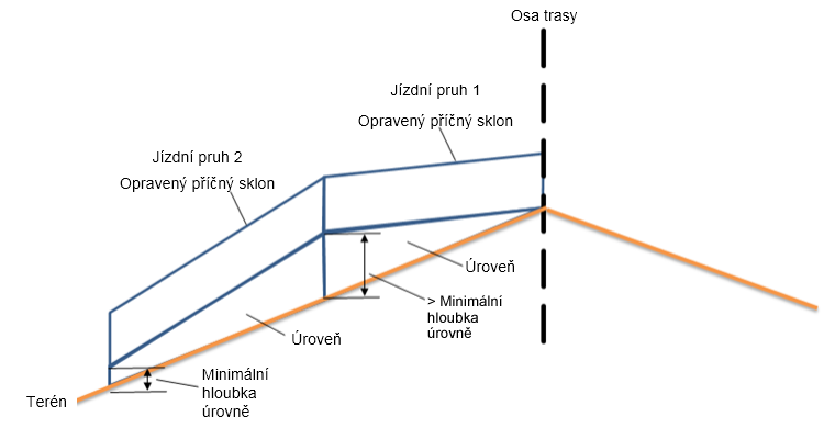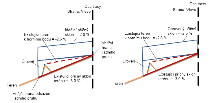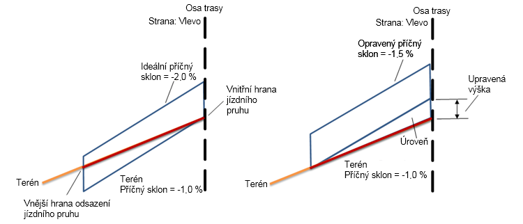 | Opravený příčný sklon | Opravený příčný sklon bude upraven na hodnotu -2.5 %. |