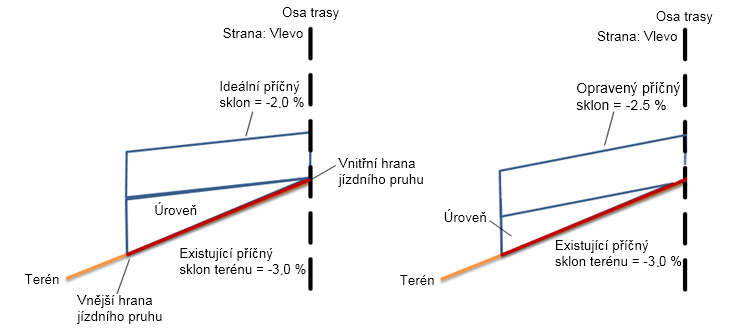 | Opravený příčný sklon | Opravený příčný sklon bude mít hodnotu -2.5 %. |