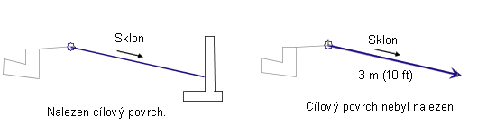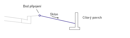 Spojnice se vede doleva nebo doprava od bodu připojení s daným sklonem, až se protne s cílovým povrchem.