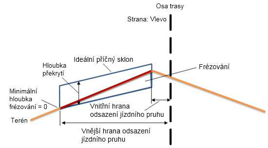 | Vnitřní hrana existujícího jízdního pruhu | Jedná se o počáteční bod pro výpočet sklonu existujícího terénu. | Numerický | 0.000 m |
