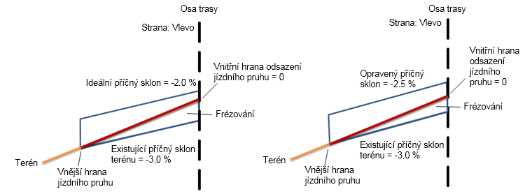 | Opravený příčný sklon | Opravený příčný sklon bude mít hodnotu -2.5 %. |
